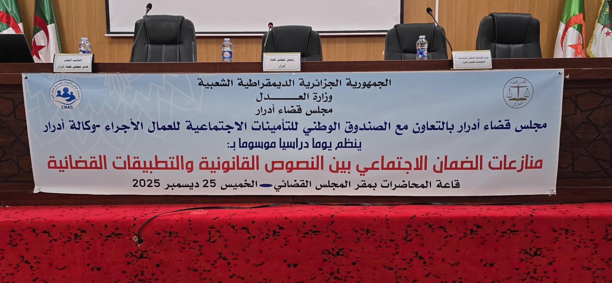 شهد مجلس قضاء أدرار اليوم الخميس تنظيم يوم دراسي حول منازعات الضمان الاجتماعي بين النصوص…