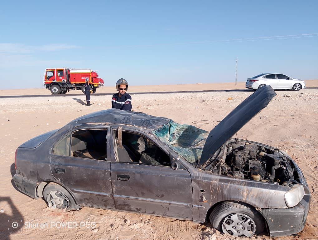 اسفر حادث إنحراف و إنقلاب سيارة سياحية مساء امس على مستوى الطريق الوطني رقم 06…