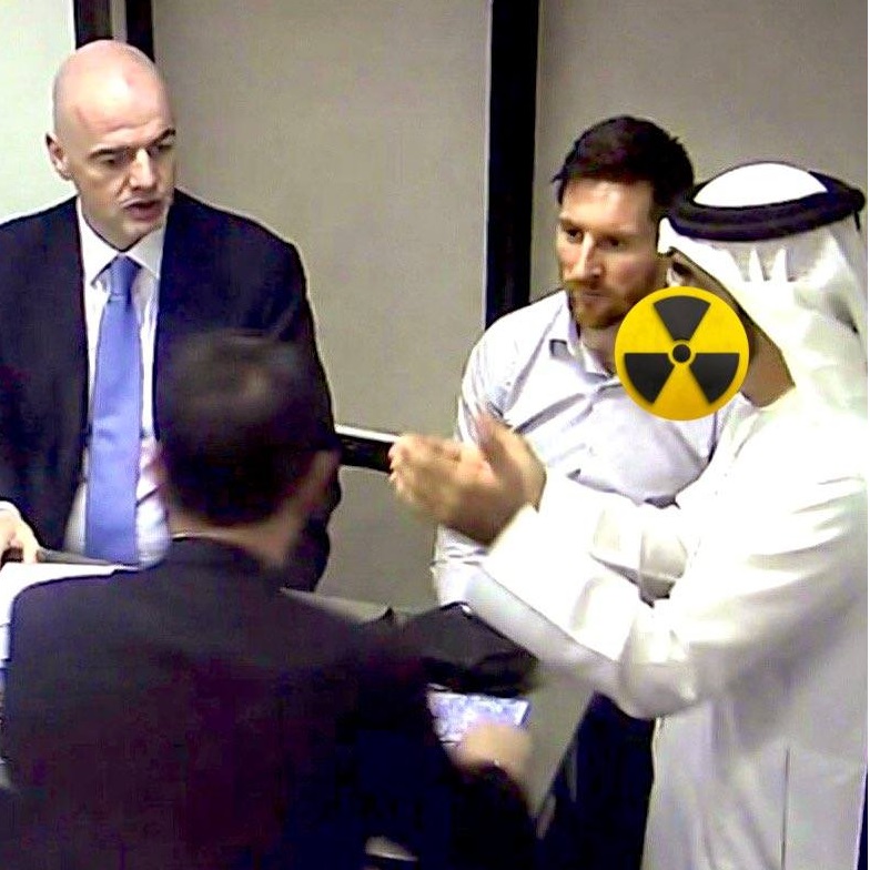 سُرِّبت صورة لاجتماع سابق لكأس العالم في قطر، يظهر فيه ليونيل ميسي، وجياني إنفانتينو، وخورخي…